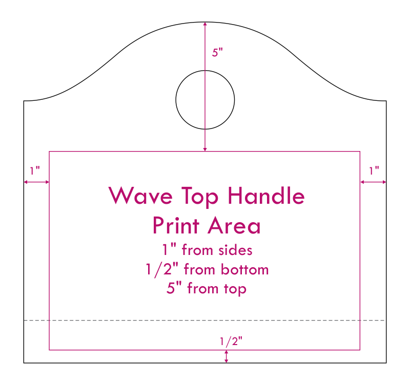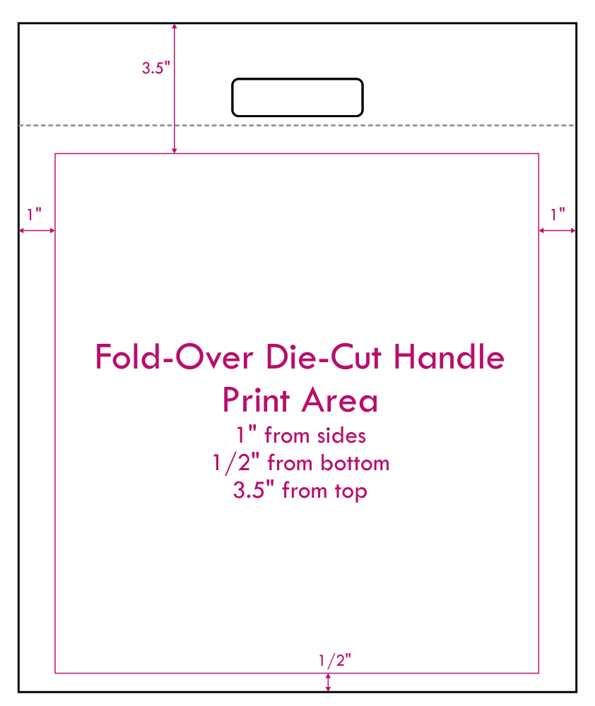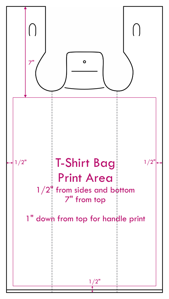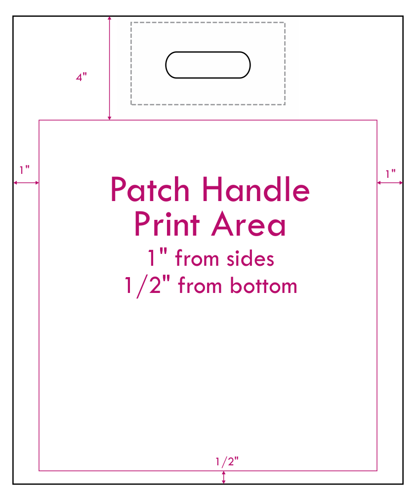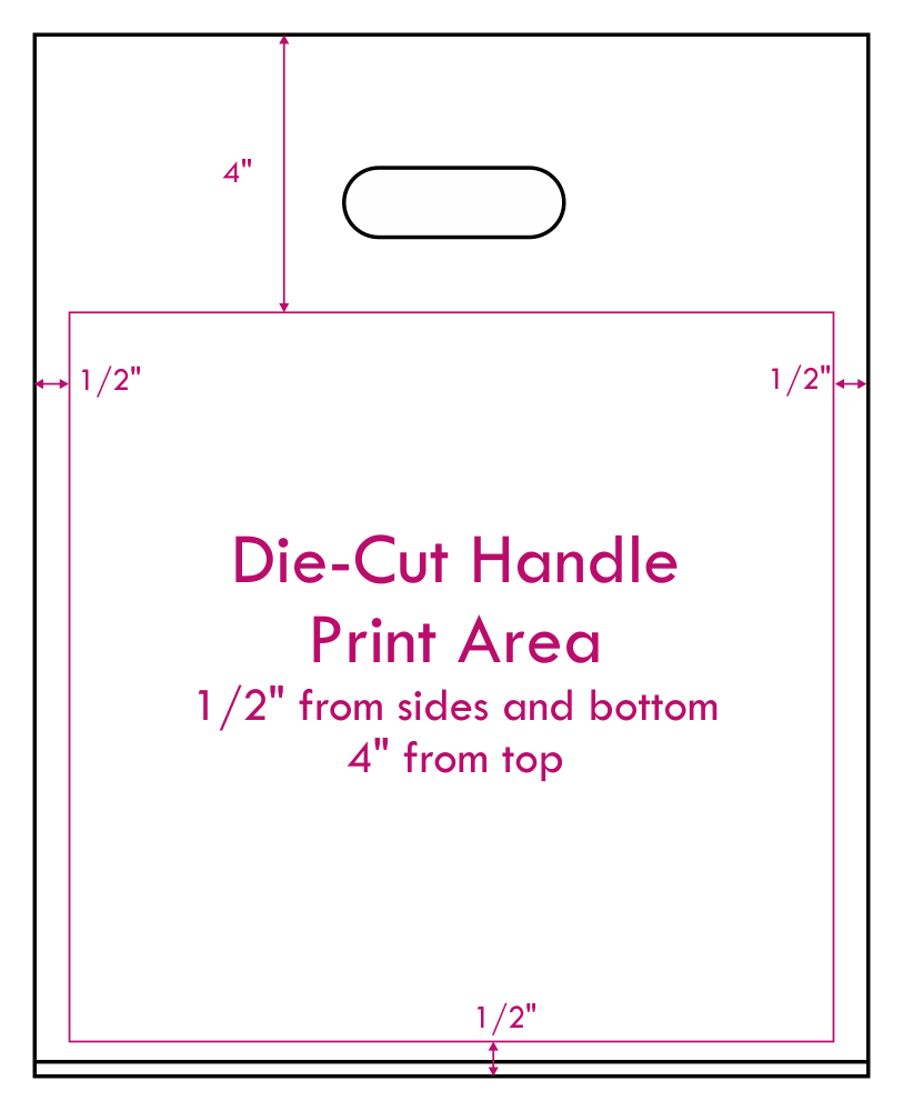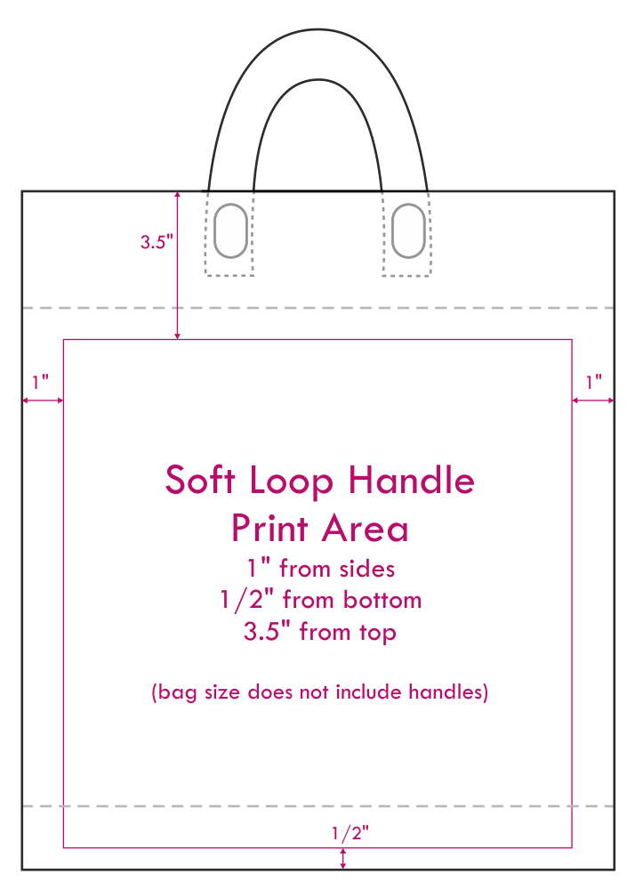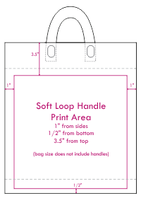 The area of the bag that can be printed varies for different bag styles. In most cases, allowing for an inch margin from sides, bottom, and from handles, works best.